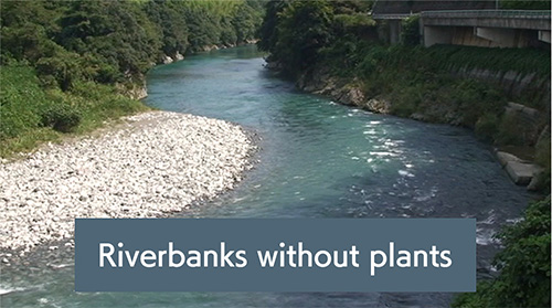 Riverbanks without plants can flood easily after rain etc. Stay cautious.