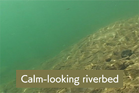 Strong currents may hit rocks on the riverbed, causing the water to rise, swirl, or even create whirlpools.