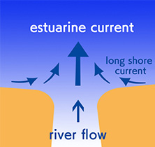 Do not play around the river mouth. The area where a river meets the sea has complex currents due to the mixing of fresh and seawater. The seabed shape can change easily, and water depth and currents fluctuate with the tide.
