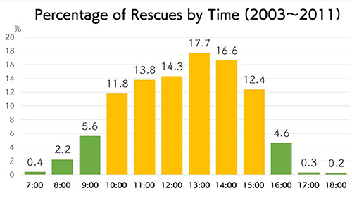 Entering the ocean when you are tired or have not had enough sleep is dangerous. Make sure you are in good physical condition before swimming.