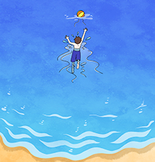 Sandy beaches are unstable so be careful not to sprain your ankle. Muscle cramps in the water can lead to panic and drowning. Always warm up before swimming.