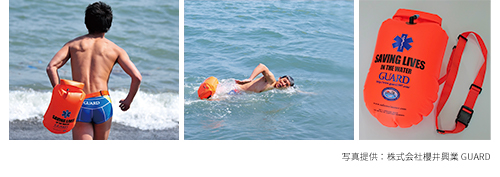 Large floats are easily affected by the wind. When using one, be mindful not to drift away. If your float is carried offshore by the wind, do not chase it because trying to retrieve it could lead to exhaustion and can put you at risk of drowning.