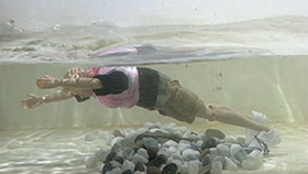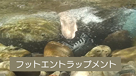 川底に岩などの障害物が多くある流れの速い瀬では、流れの中で立とうとしたり、川底に足を向けたりすると、岩のすき間に足をはさまれる危険性があります。特に急流では、フットエントラップメント(足が石の間などにはさまれたりして、川の強い力に押されて水ぼつしてしまうこと)の危険もあります。