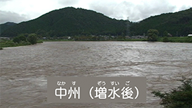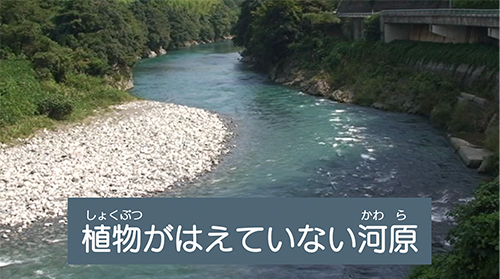 植物のはえていない河原は、雨などで川の水が増水すると、しん水または水ぼつする可能性があるので、気をつけましょう。