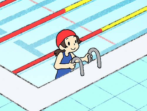 正せい解かいは②。安あん全ぜんに水みずから上あがる方ほう法ほうを知しっておきましょう。