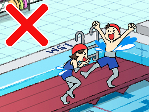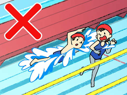 ①泳およぐときは、まわりをよく見みながら人ひととぶつからないように、ルールを守まもって活かつ動どうしましょう。