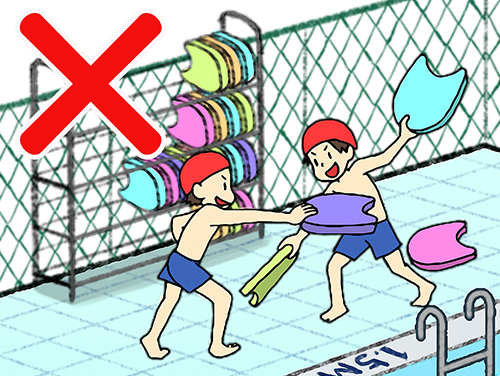 正せい解かいは、④。ビート板ばんはうくため、おぼれている人ひとに投なげこむことで、救きゅう助じょすることができます。それ以い外がいのときは、みんなで使つかうものなので大たい切せつにしましょう。