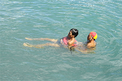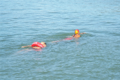 答こたえは②番ばんの「レスキューボードは、固かたく重おもたいものなので、人ひとを乗のせることはできず、つかまらせるだけの器材きざいである。」です。