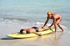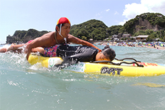 レスキューチューブはライフセーバーにとって最もっとも身近みぢかな救助きゅうじょ器材きざいです。レスキューボードは一度いちどに複数ふくすうのおぼれている人ひとを確保かくほすることできます。約やく10人にんがつかまっても、うくことが可能かのうです。また意識いしきのない人ひとでもレスキューボードに乗のせ、救助きゅうじょ、運うんぱんすることができます。
