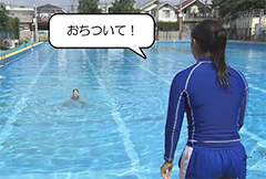 飛とびこんで助たすけに行いくと、今こん度どは自じ分ぶんがおぼれるという二に次じ事じ故この危き険けんがあるため、絶ぜっ対たいにしてはいけません。人ひとがおぼれているときは、すぐに声こえを出だして、助たすけを求もとめましょう。子こどもだけのときは、大おおきな声こえで大人おとなをよびましょう。また、3つの『水みずに入はいらないで助たすける方ほう法ほう』も覚おぼえておきましょう。