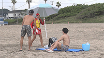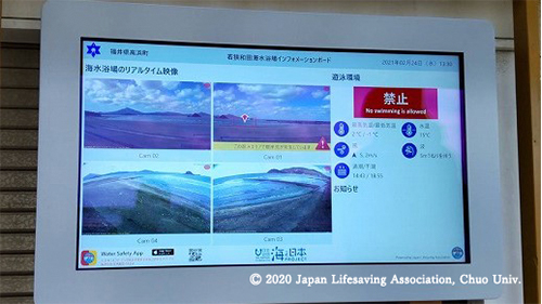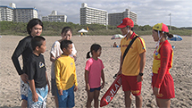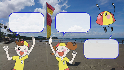 海水浴場において、海に入る直前にしておくとよい心構えやそなえ行動をみんなで確認し合いましょう。
