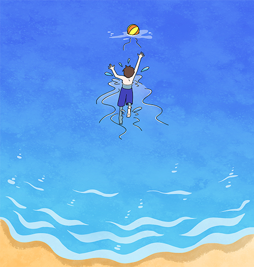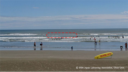 ボールを追いかけると、そこは離岸流でした。どんな危険があるか、考えながら見てみよう。